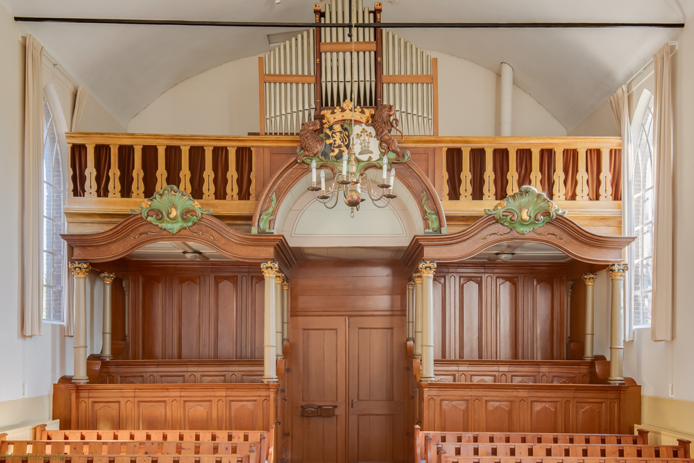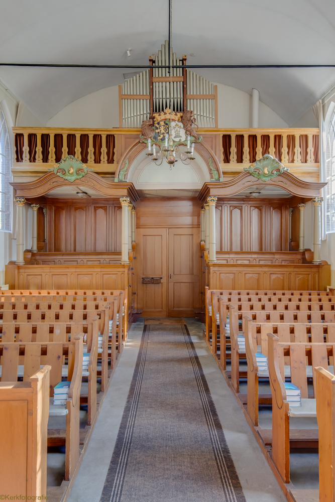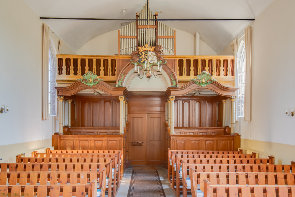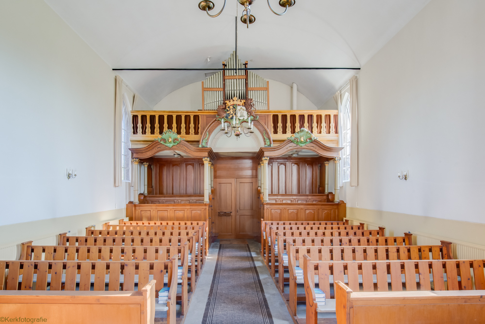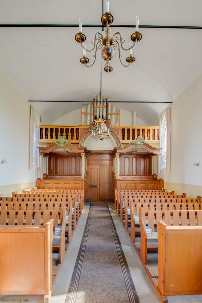 De in 1821 in traditioneel landelijke gebouwde Hervormde Kerk is een driezijdig gesloten zaalkerkje met spitsboogvensters en pannen dak, waarop boven de voorgevel een zeskantig houten klokkentorentje met spits is gebouwd. (Bron: RCE)